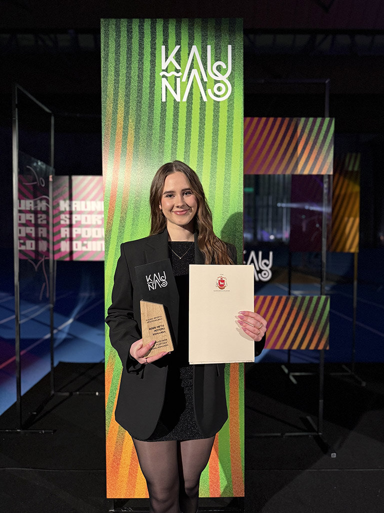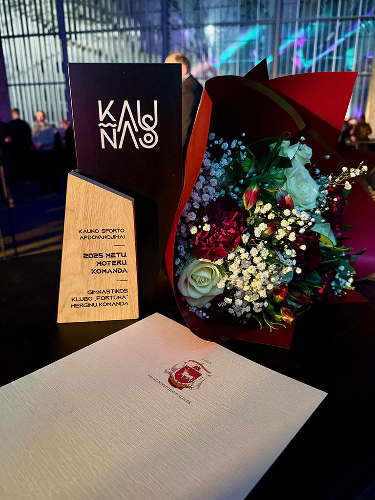 GK Fortūna direktorė Goda Kinderevičiūtė dalinasi džiugia žinia: 3C klasės mokinė Ieva Našliūnaitė Kauno miesto sporto apdovanojimuose kartu su savo komanda laimėjo apdovanojimą „2025 metų moterų komanda“ už 2025 m. pasiektą rezultatą - tapo absoliučia Lietuvos meninės gimnastikos suaugusių grupinių pratimų čempione.