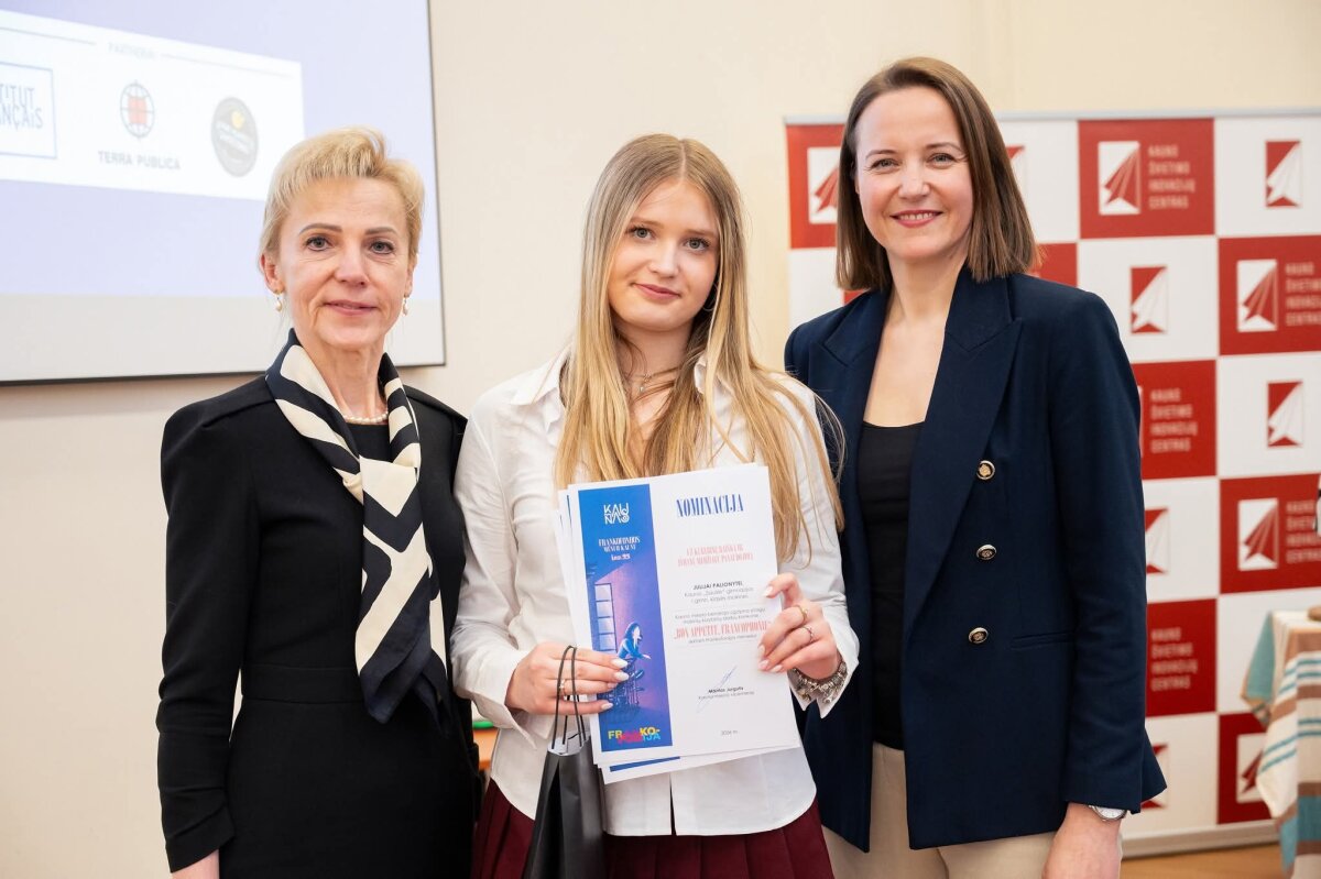 Balandžio 15 d. Kauno švietimo inovacijų centre vyko Kauno bendrojo ugdymo mokyklų mokinių kūrybinių darbų konkurso „Bon appetit, Francophonie“, skirto Frankofonijos mėnesiui 2026 m. paminėti, apdovanojimų šventė. Sveikiname nominaciją „Už kūrybinę raišką ir išmanių medžiagų panaudojimą“ pelniusią Juliją Palionytę (1D) (mokytojos A. Matukynaitė - Varnauskienė, V. Čepulkauskienė). Tegul kūrybinis apetitas tik auga!