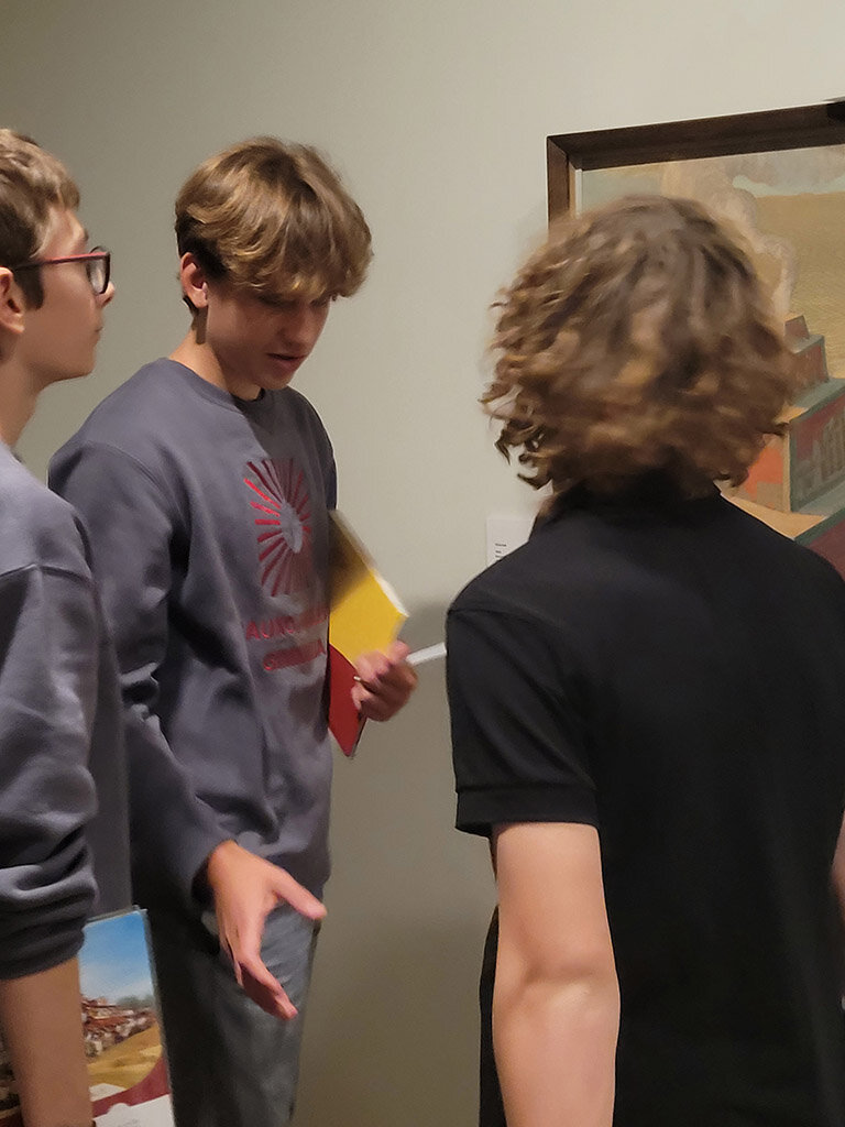 Minėdami didžio lietuvių kūrėjo jubiliejų kartu su Kauno „Aušros“ ir Palemono gimnazijų atstovais 1D ir 1H klasių bendruomenių nariai dalyvavo atvirose integruotose pamokose nacionaliniame M. K. Čiurlionio muziejuje. Mūsų gimnazistams dorinio ugdymo bei lietuvių kalbos ir literatūros pamoką „Emocijų ir jausmų pasaulis M. K. Čiurlionio paveiksluose“ vedė mokytojos Neringa Zaveckienė ir Dalia Gasiūnienė. Pasirinkę patinkantį paveikslą mokiniai grupėse kūrė eilėraštį arba miniatiūrą, išsakydami savo tuo metu patirtas emocijas.