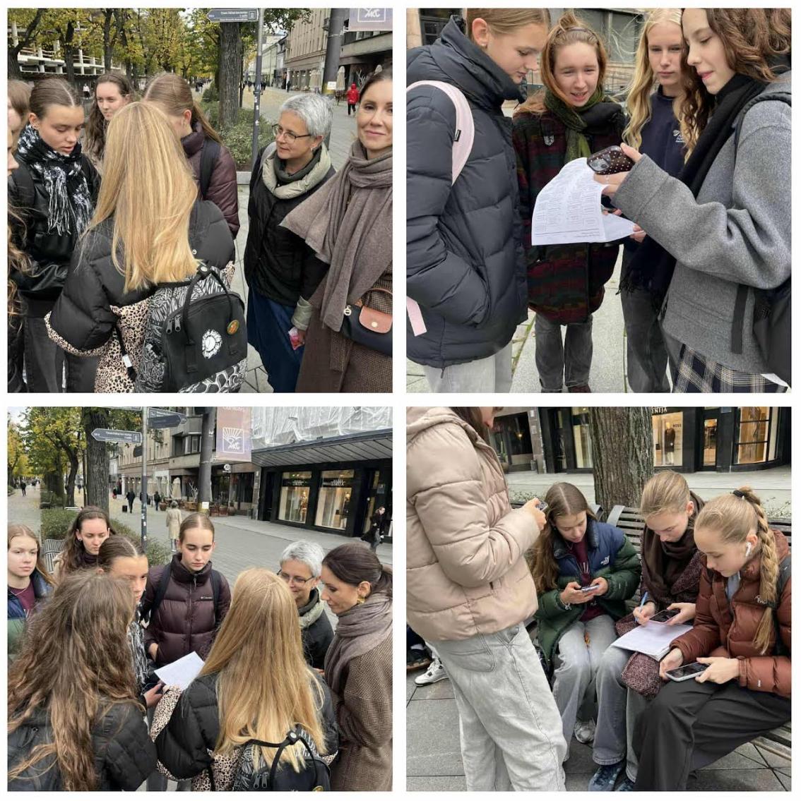 Kiekvienais metais gimnazijoje vokiečių kalbos mokytojų iniciatyva organizuojami vokiečių kalbos savaitės „Ö kaip vokiškai“ renginiai – ir šie metai nėra išimtis. „Saulės“ gimnazijos pirmokai spalio 16 dieną kartu su J. Dobkevičiaus progimnazijos ir Dailės gimnazijos moksleiviais dalyvavo orientaciniame žaidime „Architektur der Zwischenkriegszeit im Zentrum von Kaunas“, kurį parengė vokiečių kalbos mokytojos Goda Stelnionienė, Jurgita Stonienė, Inga Žegužauskė, Edita Kondrašovienė, Marina Nenachova. Mišriose komandose moksleiviai pagal užuominas turėjo surasti žymiausius tarpukario pastatus, esančius Kauno centre, ir atsakyti į pateiktus klausimus. Be to, moksleiviai turės parengti pristatymus, kuriuose atsispindės jų kūrybiškumas. Ačiū visiems dalyvavusiems, laukiame įdomių pristatymų. Štai keletas epizodų iš renginio.