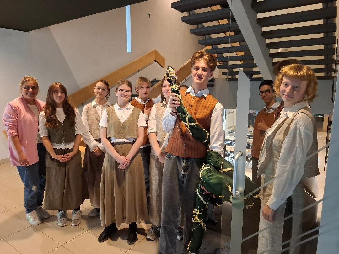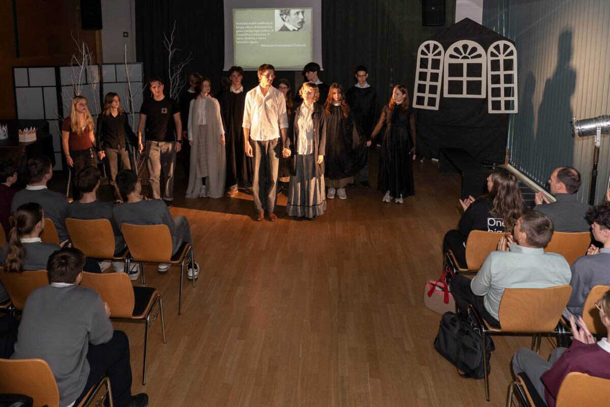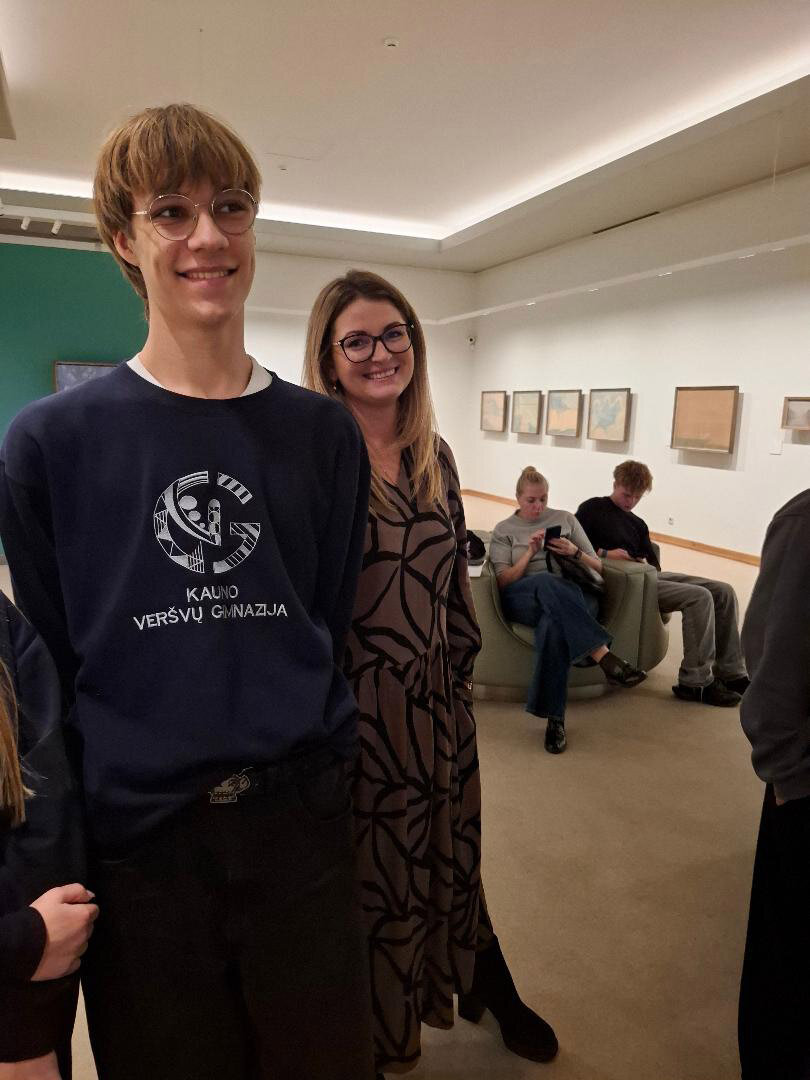 Spalio 16 d. nacionaliniame M. K. Čiurlionio dailės muziejuje įvyko jau trečiasis mūsų gimnazijos inicijuotas TŪM tinklaveikos renginys „Išskleisk sparnus“, skirtas 150-osioms M. K. Čiurlionio gimimo metinėms paminėti. Renginyje dalyvavo ir Kauno Pilėnų progimnazijos, Kauno Veršvų gimnazijos komandos ir Kauno „Aušros“ gimnazijos mokiniai ir mokytojai. Muziejaus edukatorės pakvietė svečius susipažinti su menininko kūryba, jos paslaptimis bei paskatino pažvelgti į laikui nepavaldų menininko žvilgsnį tyrinėjant ir mokslo pasaulį. Kauno „Saulės“ gimnazijos dramos studijos „Čia ir dabar“ vadovė, aktorė, režisierė Lili Laucevičienė drauge su jaunaisiais aktoriais, mūsų gimnazijos mokiniais, pakvietė prisiliesti prie M. K. Čiurlionio biografijos, kūrybos ir meilės spektaklyje „Išskleisk sparnus“, kuris vyko muziejaus Muzikos salėje. Tai buvo nuostabu! Kiekvienas, stebėjęs spektaklį, negalėjo nesistebėti ne tik menininko gyvenimo istorija, iššūkiais bei patyrimais, bet ir mūsų gimnazijos mokinių meistriškumu perteikiant svarbiausią žinutę žiūrovui, kad „reikia turėti šviesos su savimi, iš savęs, kad šviestum tamsybėse visiems ant kelio stovintiems, kad jie išvydę patys rastų šviesos savyje ir eitų savo keliu, kad nestovėtų tamsybėse“. Už pagalbą ir bendradarbiavimą įgyvendinant idėjas ir iniciatyvas nuoširdžiai dėkojame nacionalinio M. K. Čiurlionio dailės muziejaus TŪM veiklų koordinatorei Justei Kutkienei ir visiems svečiams.