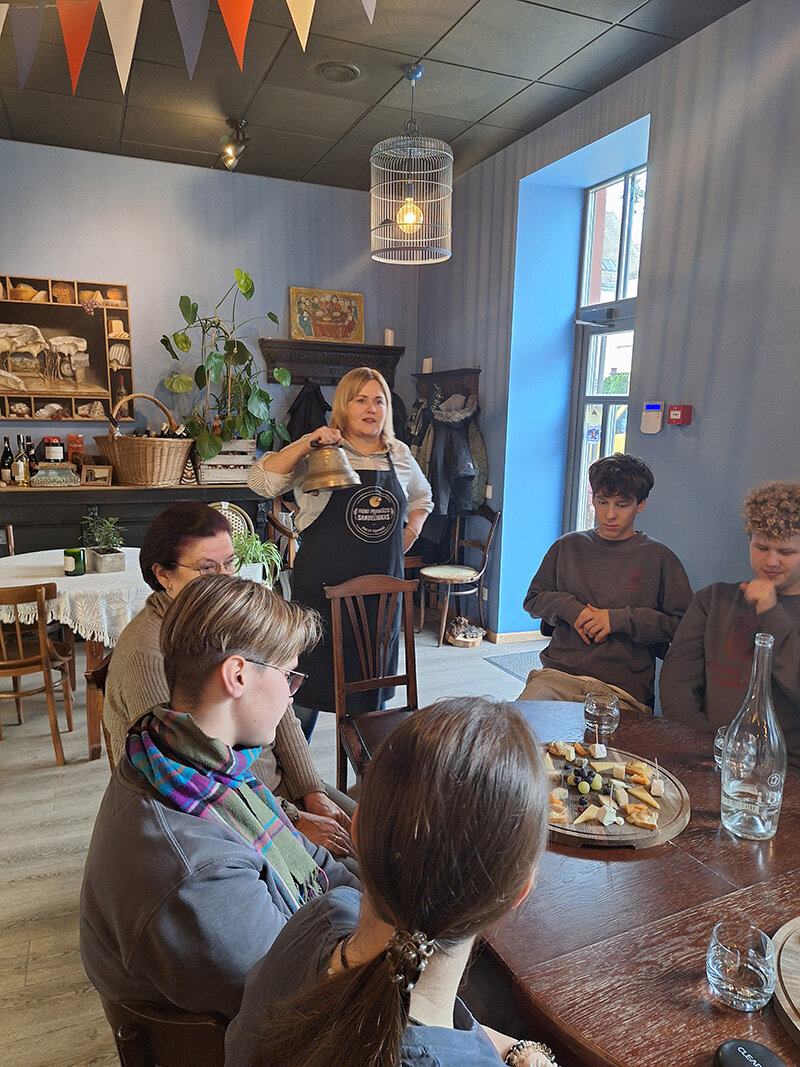 Spalio 14 d. 2A klasės mokiniai kartu su prancūzų kalbos mokytoja Vida Čepulkauskiene ir klasės vadove Ina Karosevičiene tapo prancūziškų sūrių gurmanais. Lankėmės Aušros ir Hugues Fukų įkurtoje parduotuvėlėje „Vieno prancūzo sandėliukas“. Sužinojome, kaip sūriai gaminami, kodėl atsiranda vienoks ar kitoks kvapas, forma, skonis, sužinojome apie įvairius Prancūzijos regionus, mokiniai patobulino prancūzų kalbos žinias.