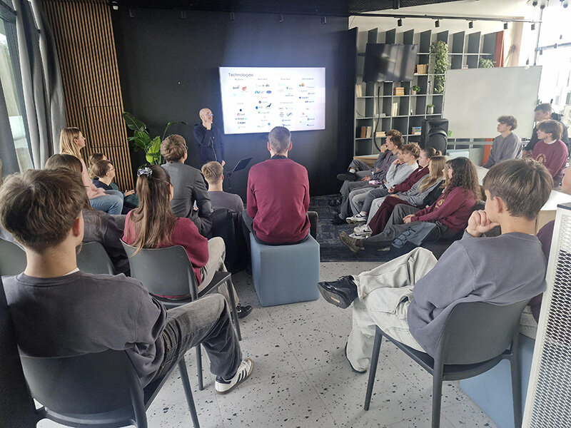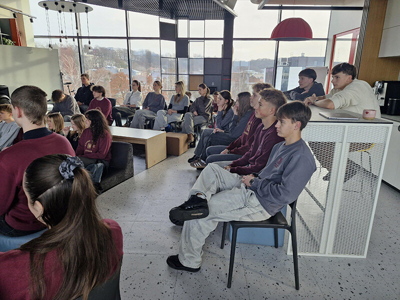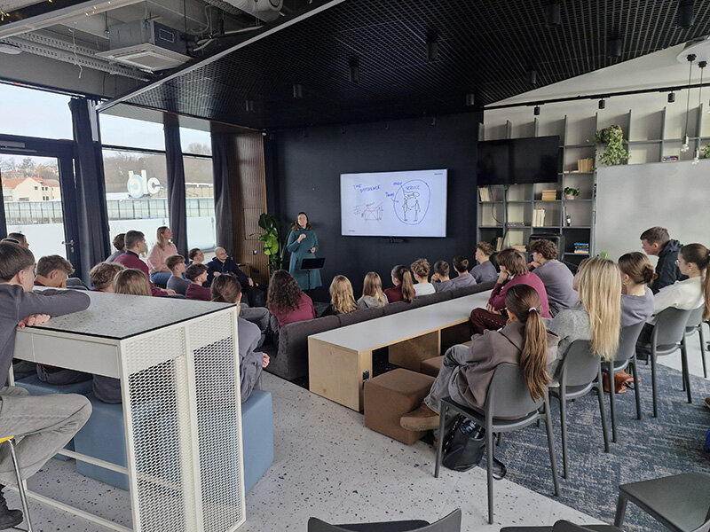 Lapkričio 21 d. 3-ųjų ir 4-ųjų klasių klasių mokiniai (mokyt. Marius Vainauskas) lankėsi Helmes įmonėje. Įmonės darbuotojai pristatė įmonę, dalinosi savo kasdieniais rūpesčiais ir džiaugsmais, be to, diskutavome apie karjerą informacinių technologijų srityje. Mokiniai turėjo unikalią galimybę apžiūrėti Kauno centre esančias ofiso patalpas, pabendrauti ir užduoti įvairius klausimus atrankos specialistams ir programuotojams.