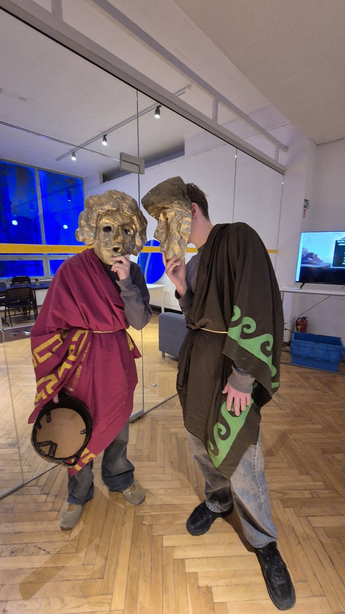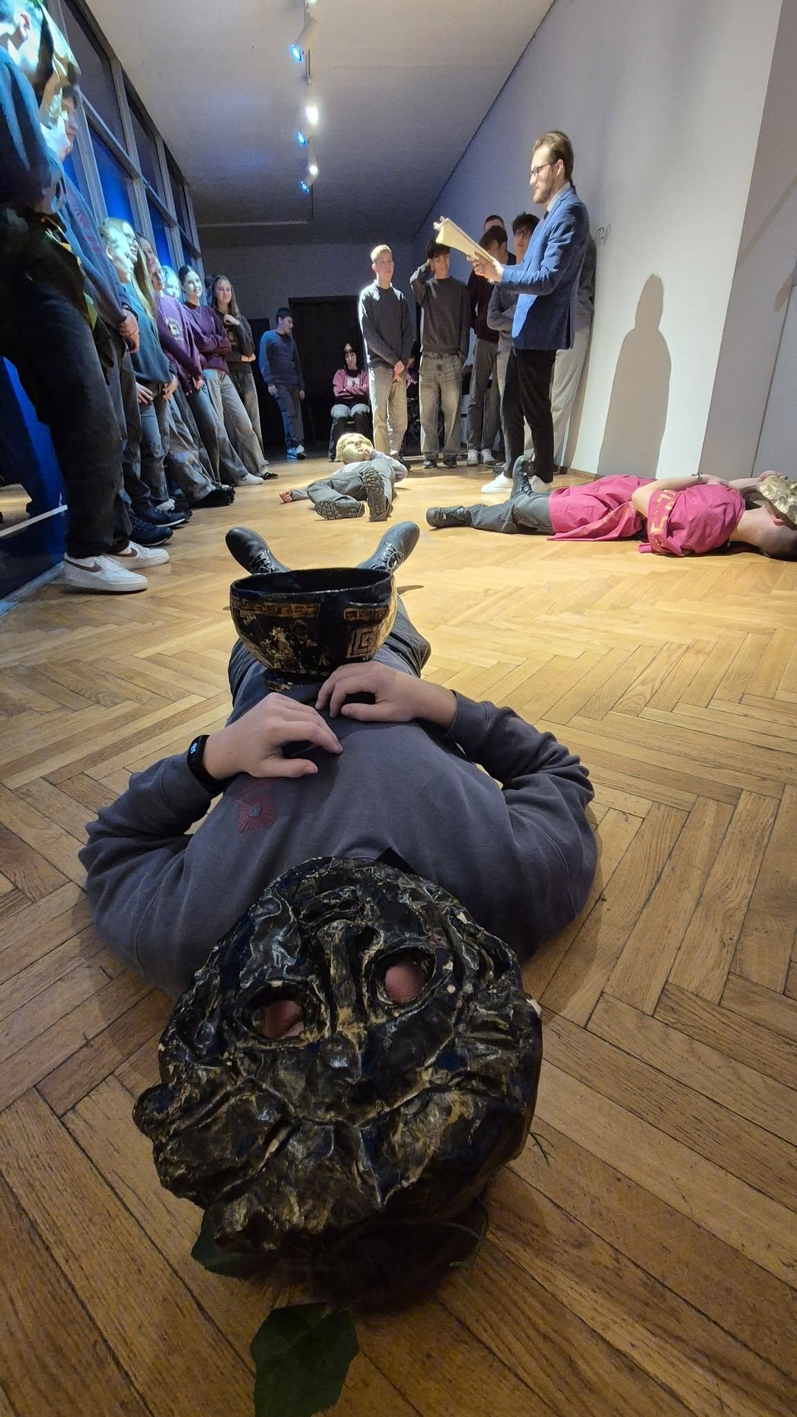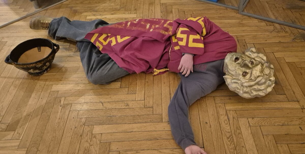 Pamokoje muziejaus edukatoriai pristatė antikinės Graikijos (XI-IV a. pr. Kr.) kultūrą ir jos reikšmę Vakarų Europos kultūrai. Vėliau gimnazistai atliko praktinę užduotį - atrinkti mokiniai rengėsi chitonus, užsidėjo kaukes ir vainikus. Prieš vaidinimo pradžią buvo trumpai aptariami svarbiausi antikinio teatro bruožai. Moksleiviai išbandė aktorinius gebėjimus ir sužinojo apie teatro ištakas bei raidą. Vaidinimas buvo apie paskutinį Heraklio žygį ir jo žūtį. Vėliau visi mokiniai sustojo ratu ir skambant muzikai mokėsi šokti sirtakį.