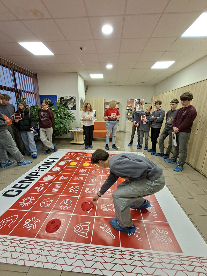 Lapkričio 28 d. Lietuvos sporto universiteto bibliotekoje vyko integruota gimnazijos bibliotekos - informacinio centro ir fizinio ugdymo pamoka „LSU edukacinio žaidimo „Čempionai“ pristatymas“. Kartu su LSU darbuotojomis sportines žinias ir savo jėgas išbandė 1C klasės mokiniai su klasės vadove Ieva Ilickiene ir bibliotekos - informacinio centro bibliotekininke Asta Kvedarauskiene. Žaidimo metu mokiniai susipažino su žymiais Lietuvos sportininkais, sužinojo įdomių faktų apie sportą ir Lietuvos sporto universitetą. Nugalėtojams įteikti prizai, o dalyvavusiai klasei - stalo žaidimas „Čempionai“.