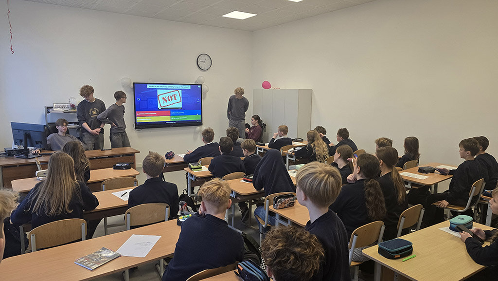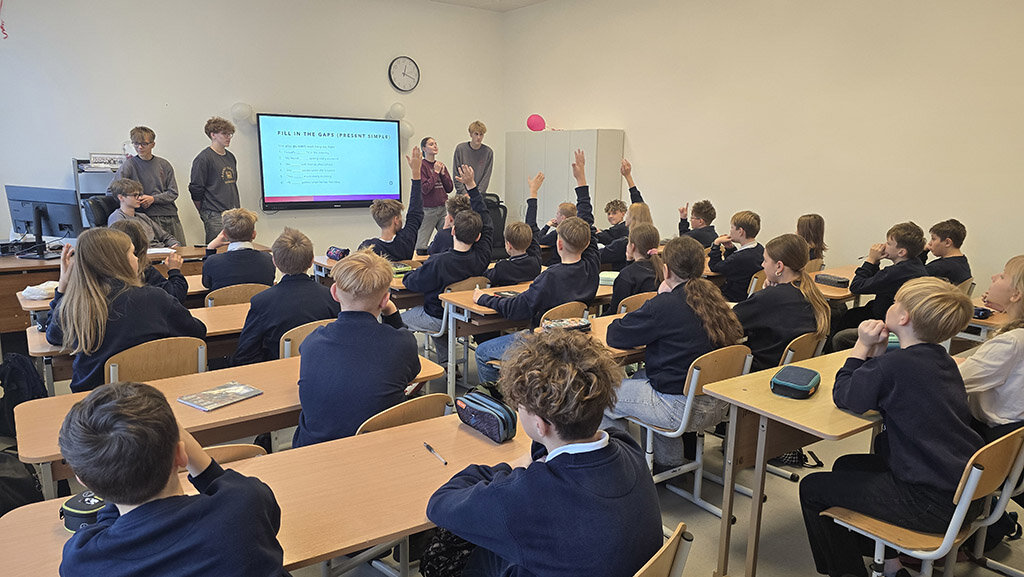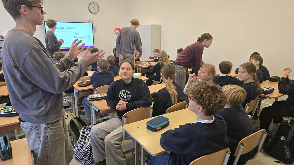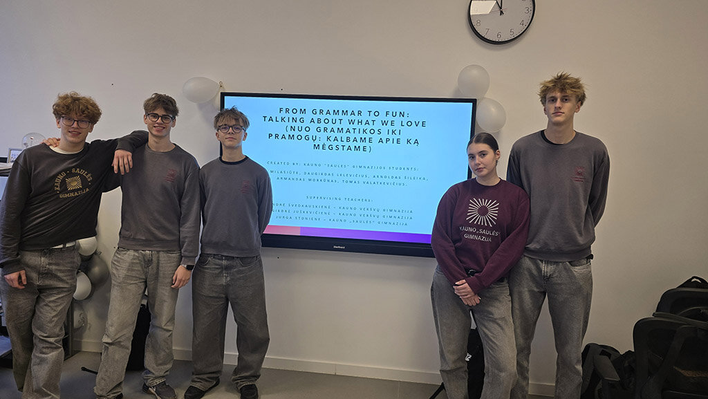 Lapkričio 25 d. 2A ir 2C klasių mokiniai vyko į Veršvų gimnaziją pravesti atviros anglų kalbos pamokos „Mokinys – mokiniui“, siekiant plėtoti tarpinstitucinį bendradarbiavimą ir įgyvendinti #TŪM pažangos plano tinklaveikos 47 veiklą. Pamokoje „From Grammar to Fun: Talking About What We Love“ mokiniai dalinosi savo žiniomis su bendraamžiais, kūrybiškai pristatė veiklas, kuriose gramatika tampa įdomiu ir smagiu būdu kalbėti apie savo pomėgius. Tai buvo puiki patirtis ugdant mokinių pasitikėjimą, bendravimo įgūdžius ir stiprinant ryšius tarp mokyklų.