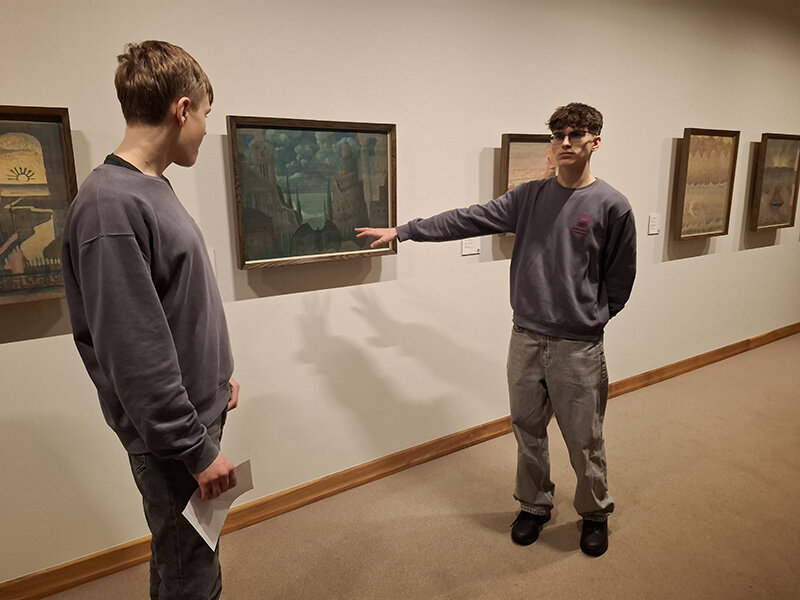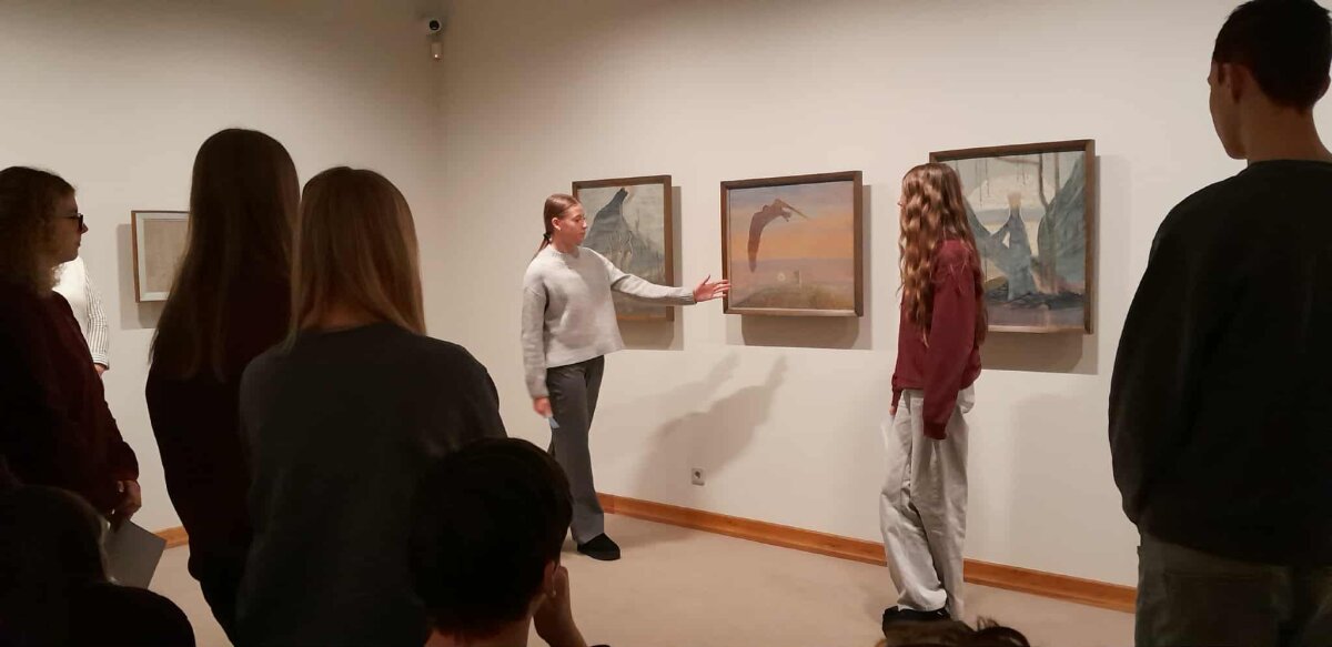 Atviros integruotos pamokos M. K. Čiurlionio dailės muziejuje - įdomi ir prasminga patirtis prakalbinant dailininko ir kompozitoriaus paveikslus. Lapkričio 27 d. 1C klasės mokiniai dalyvavo atviroje integruotoje dorinio ugdymo ir muzikos pamokoje „Pažink Čiurlionio filosofiją" ir lapkričio 28 d. 1E klasės mokiniai - integruotoje dorinio ugdymo ir lietuvių kalbos pamokoje „Kas žmogui suteikia ramybę? Harmonijos prasmė M. K. Čiurlionio paveiksluose“, kurias rengė ir vedė mokytojos Lina Brazienė, Neringa Zaveckienė, Jovita Kulakauskienė. M. K. Čiurlionis mus pakvietė apmąstyti „pasaulį kaip didelę simfoniją“.