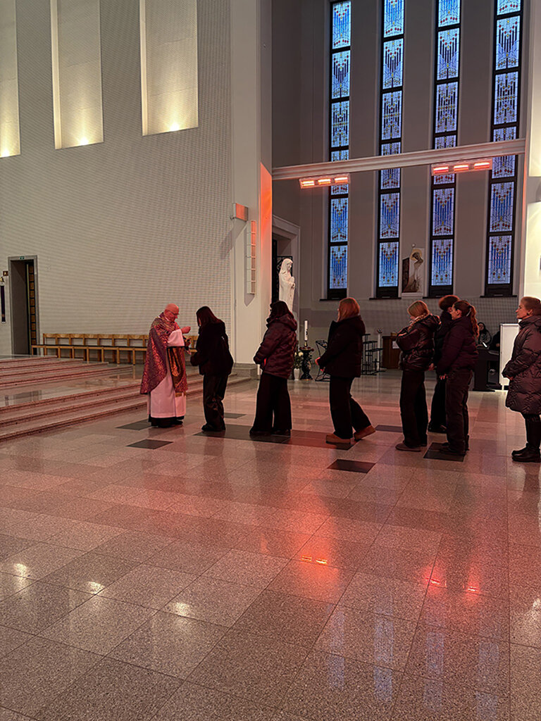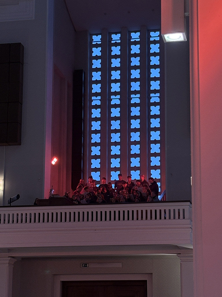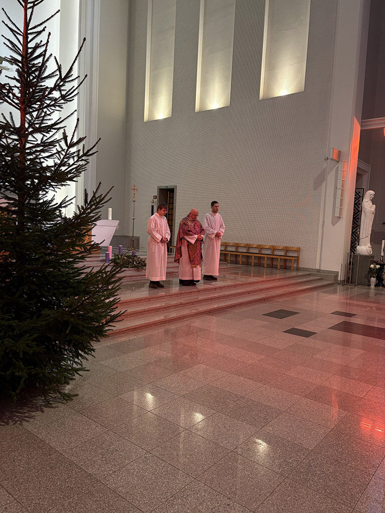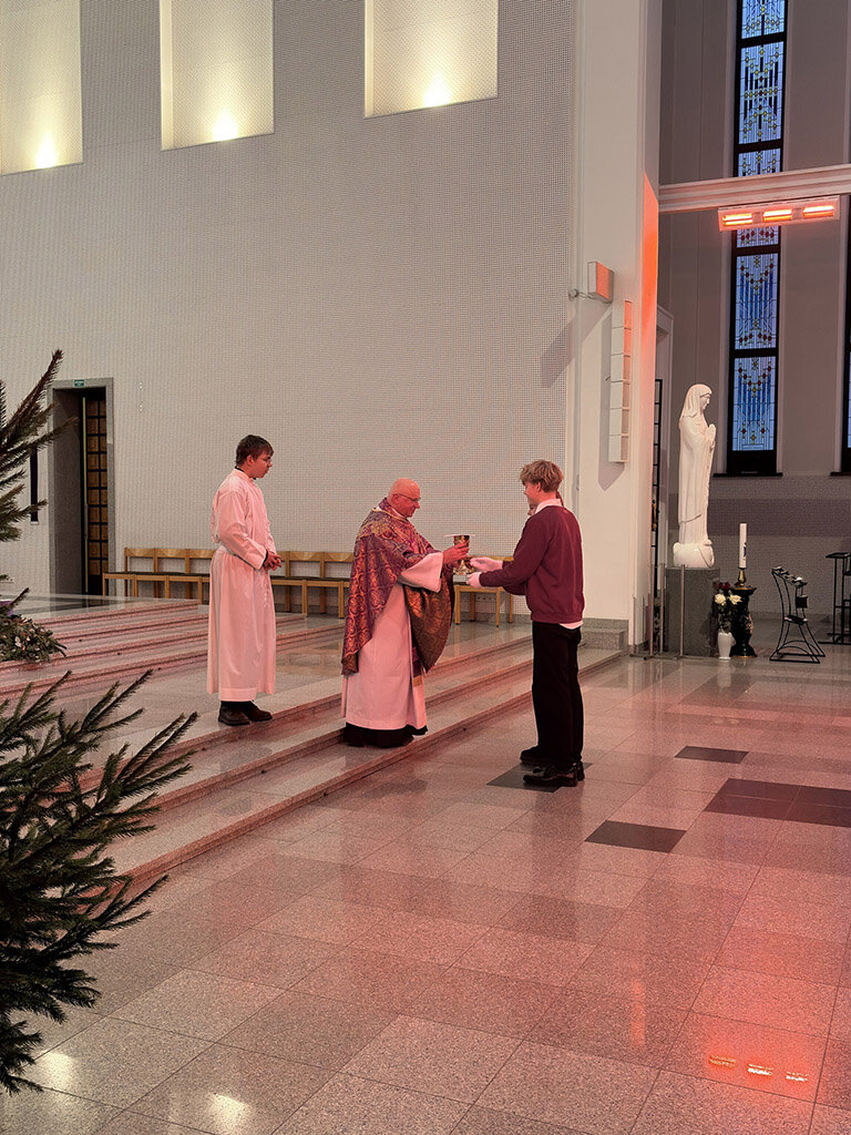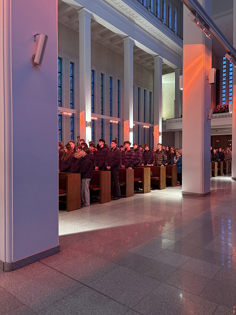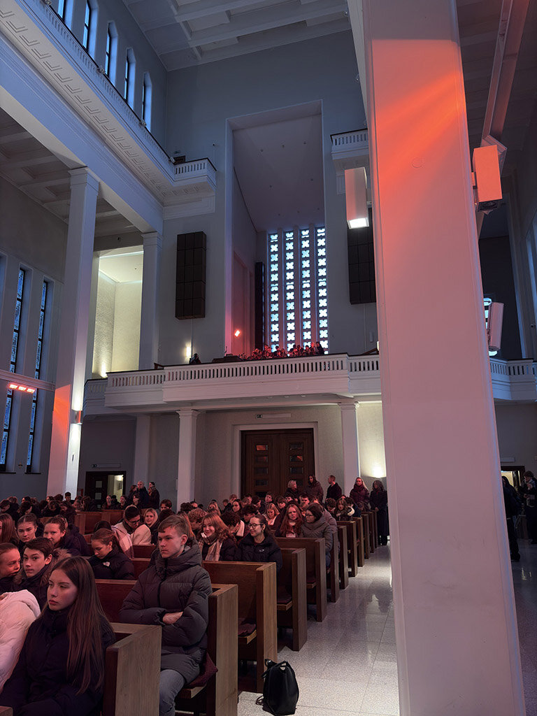 Advento rekolekcijose Kristaus Prisikėlimo bazilikoje gimnazijos bendruomenė įsiklausė į parapijos klebono kun. teol. lic. Kęstučio Rugevičiaus kvietimą susitikti su Kristumi širdies tyloje, džiugioje bendrystėje ir giesmių tekstuose.