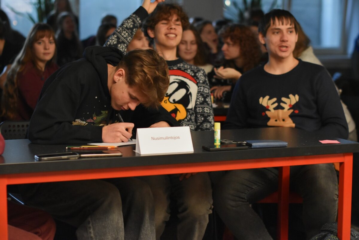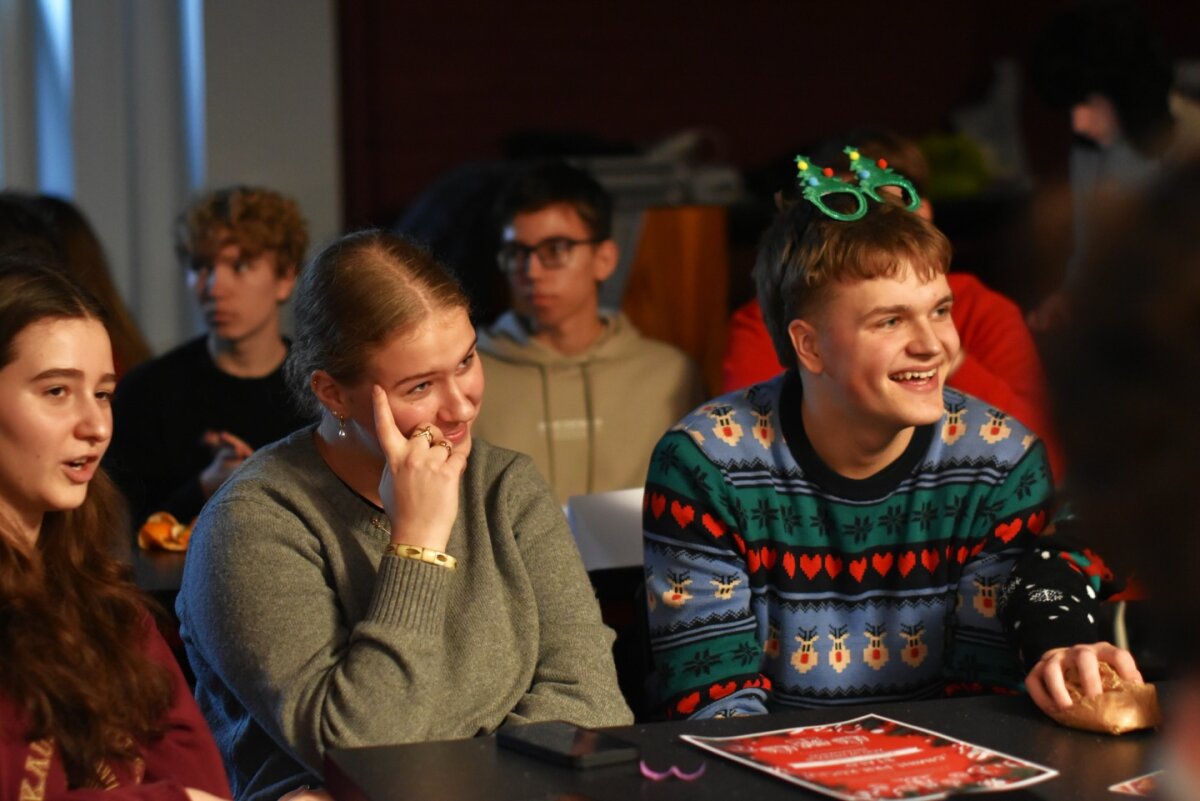 Šiais metais gimnazijos mokinių tarybos organizuojamame kalėdiniame protmūšyje dalyvavo daug gimnazijos moksleivių, o prizines vietas, skyrė tik pora taškų.
