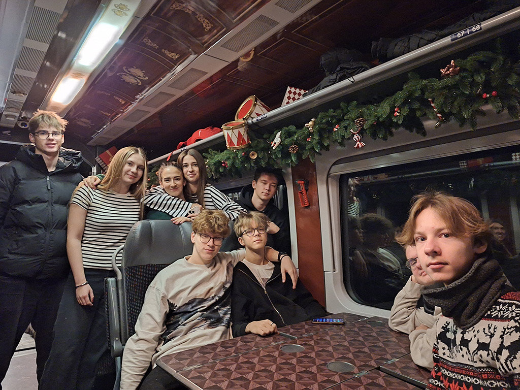 Ankstyvą gruodžio 20 dienos rytą 2A klasės bendruomenė susirinko Kauno geležinkelio stotyje, suplanavę patirti nuotykį kelionėje traukiniu į kalėdinę Lenkijos sostinę Varšuvą. Nors kelionė truko beveik septynias valandas, bet ji tikrai neprailgo bendraujant, žaidžiant stalo žaidimus, skaitant knygas.