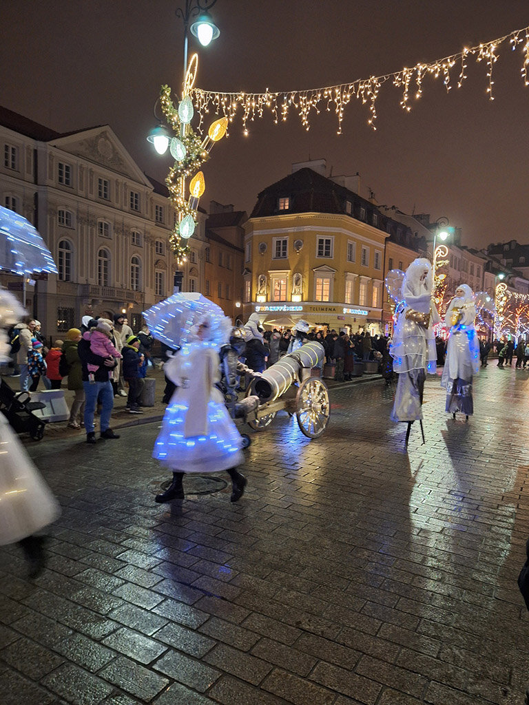 Atvykę į Varšuvą ir įsikūrę viešbutyje lankėme miesto senamiestį, kuris įtrauktas į UNESCO Pasaulio paveldo sąrašą. Gražiais vaizdais mus džiugino Karalių pilis ir aikštė, kuri pasipuošusi įspūdingo grožio Kalėdų egle, Karaliaus Zigmanto III kolona – pirmasis paminklas pasauliečiui Lenkijoje, Šv. Jono katedra – gotikinio stiliaus bažnyčia, svarbiausia Lenkijos istorijos įvykių liudininkė, kurios požemiuose ilsisi žymiausių lenkų palaikai, senamiesčio Turgaus aikštė ir paminklas Varšuvos simboliui – Undinei, taip pat Barbakano gynybinė siena. Vaikštinėjome kalėdiškai išpuoštu Karališkuoju keliu, kur sutikome ir patį Kalėdų senelį.