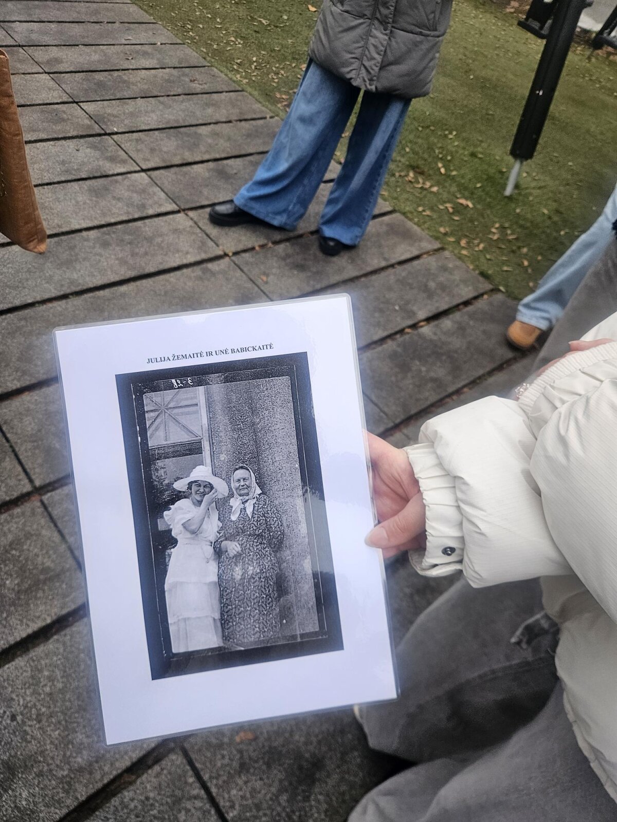 Mokiniai sužinojo, kad 1911-ųjų pavasarį vykdama į Vilnių Žemaitė planavo įsikurti ilgam ir žinojo, kad gyvens miesto centre – Šv. Jurgio gatvėje esančiame ištaigingame dvarininko bute (tuometinis adresas Šv. Jurgio 19-13). Dabar šiame Gedimino pr. 17 name veikia Susisiekimo ministerija. Čia gyvendama rašytoja nuomos nemokėjo, bet turėdavo prižiūrėti butą ir už darbą kas mėnesį gaudavo po 7 rublius. Tas laikotarpis jos gyvenime labai įdomus. Nors iš pradžių patyrė finansinių sunkumų, laikui einant ji su miestietės gyvenimu apsiprato, ėmė čia įleist šaknis, susirado daug draugų, pradėjo lankyti paskaitas, įvairius kultūros vakarus, koncertus. Ji užmezgė ryšius su Vilniuje veikusiomis redakcijomis, siųsdavo joms savo kūrinius, bendradarbiavo juos rengiant spaudai. Ypač glaudžius ryšius tuo metu ji palaikė su „Lietuvos žinios“ redakcija. Spaudžiama vargo, Žemaitė sutiko 1913–1915 m. eiti fiktyvias „Lietuvos žinių“ atsakingosios redaktorės pareigas. Dėl vieno straipsnio apie Valstybės dūmą ir kadetus redakcija sulaukė didelio spaudimo, Žemaitė 1915 m. buvo patraukta atsakomybėn ir dvi savaites įkalinta Vilniaus Lukiškių kalėjime (Lukiškių skg. 6). 1913 m. pabaigoje Juliją pradėjo globoti advokatas Andrius Bulota ir jo žmona Aleksandra. Jie Žemaitei pasiūlė apsistoti jų šeimai priklausiusiame bute (J. Basanavičiaus g. 19–11). Jau pirmosiomis Pirmojo pasaulinio karo dienomis Žemaitė aktyviai įsijungė į organizacijų, kurios rūpinosi karo pabėgėlių apgyvendinimu, šalpa, veiklą. 1915 m. rudenį rašytoja kartu su Bulotais išvyko į Ameriką rinkti lėšų nukentėjusiems nuo karo paremti. Iš šios šalies į Vilnių nebegrįžo, apsistojo Marijampolėje. Per edukaciją mokiniai ne tik išgirdo įdomių faktų apie Žemaitę, bet aplankė objektus, susijusius su rašytojos gyvenimu Vilniuje.