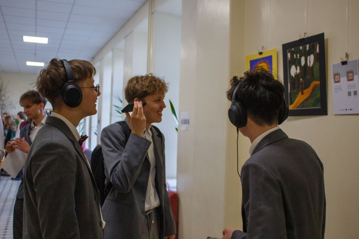 Kviečiame parodos autorius, dalyvius, gimnazijos alumnus bei jų šeimos narius apsilankyti parodoje iki sausio 30 d. Vytauto pr. 44, Kaunas. Atsineškite mobilųjį telefoną ir ausines - parodos patirtis prasideda nuskenavus QR kodą.