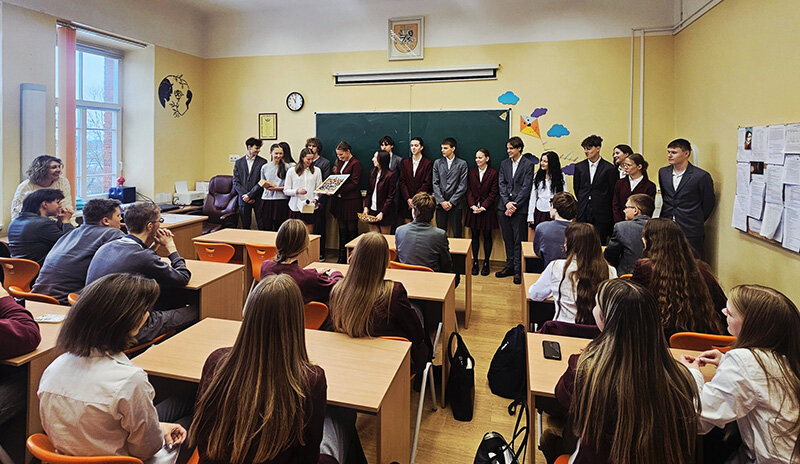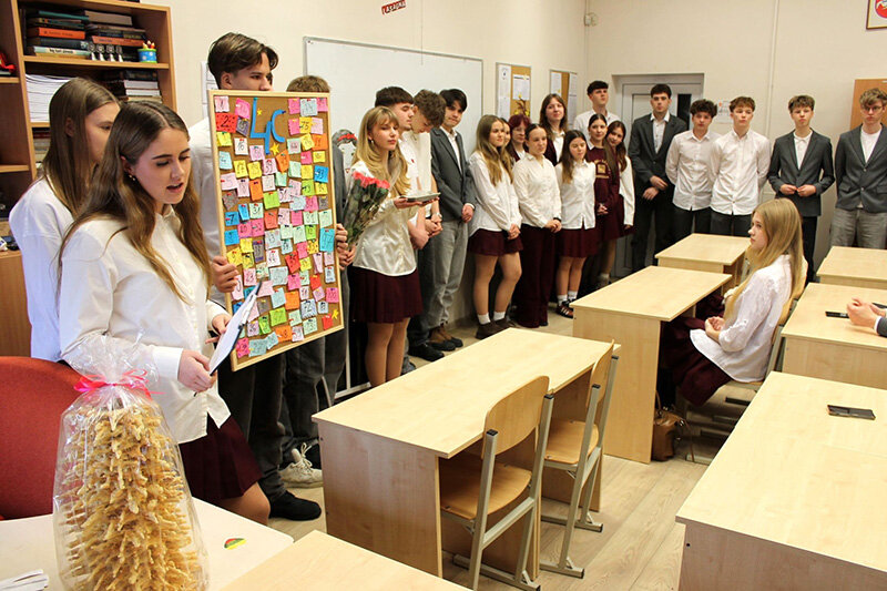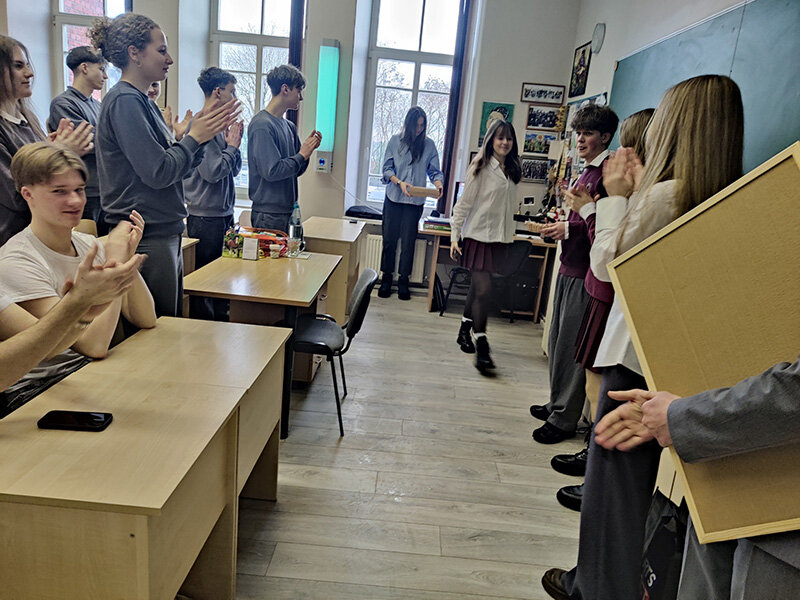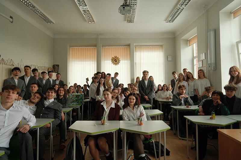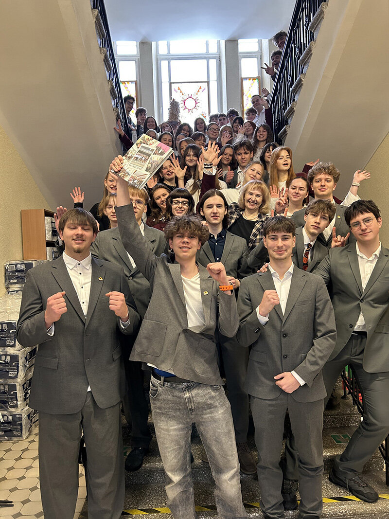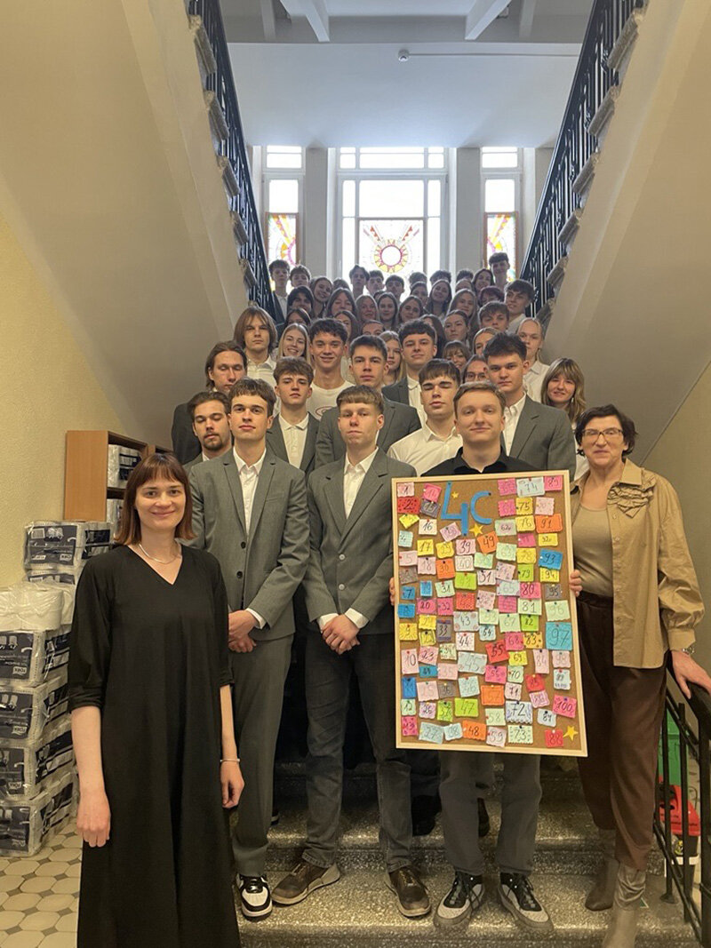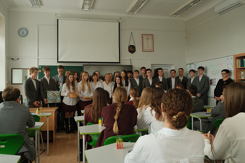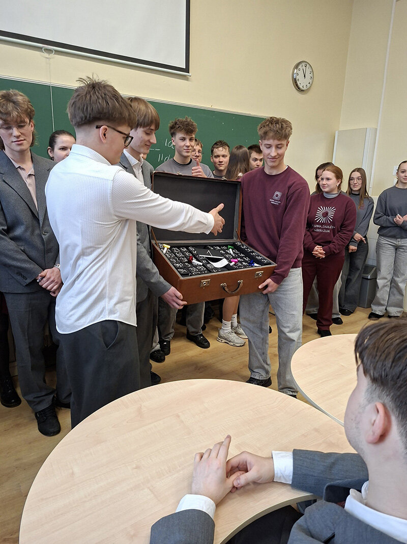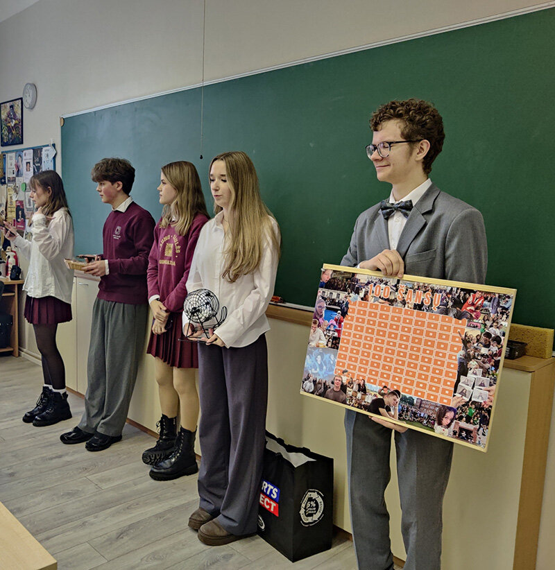 98-osios laidos abiturientams trečiokai įteikė Šimtadienio kalendorių ir ženkliukus