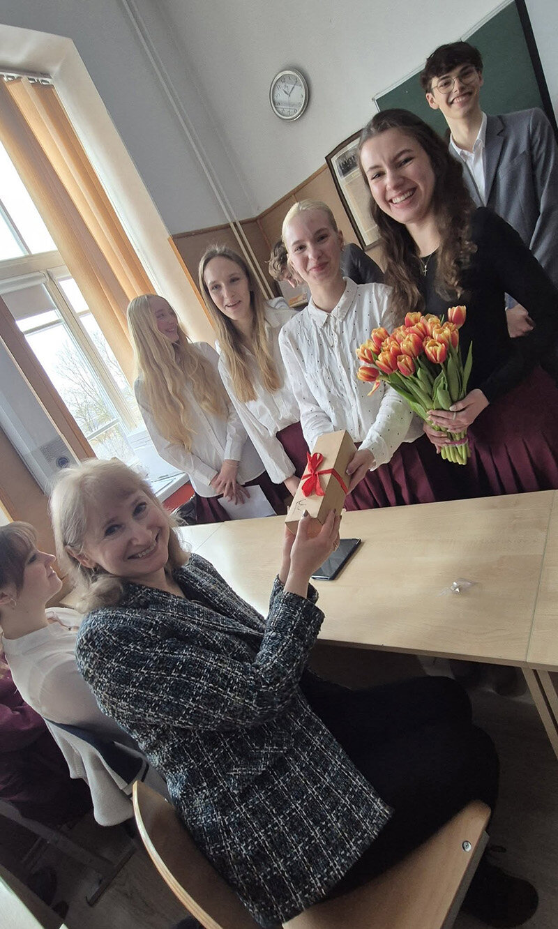 Vasario 23 d. gimnazijos menų mokytojai J. Kulakauskienė, G. Paukštys ir L. Lauc... -