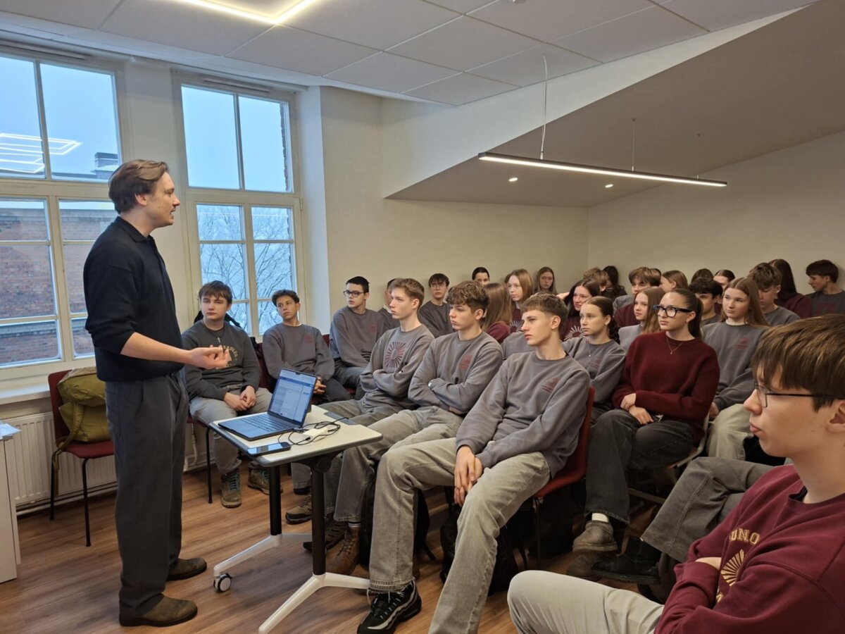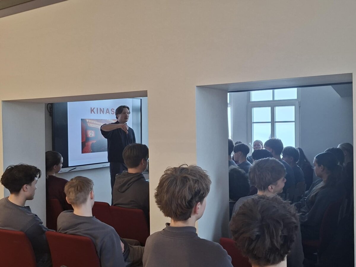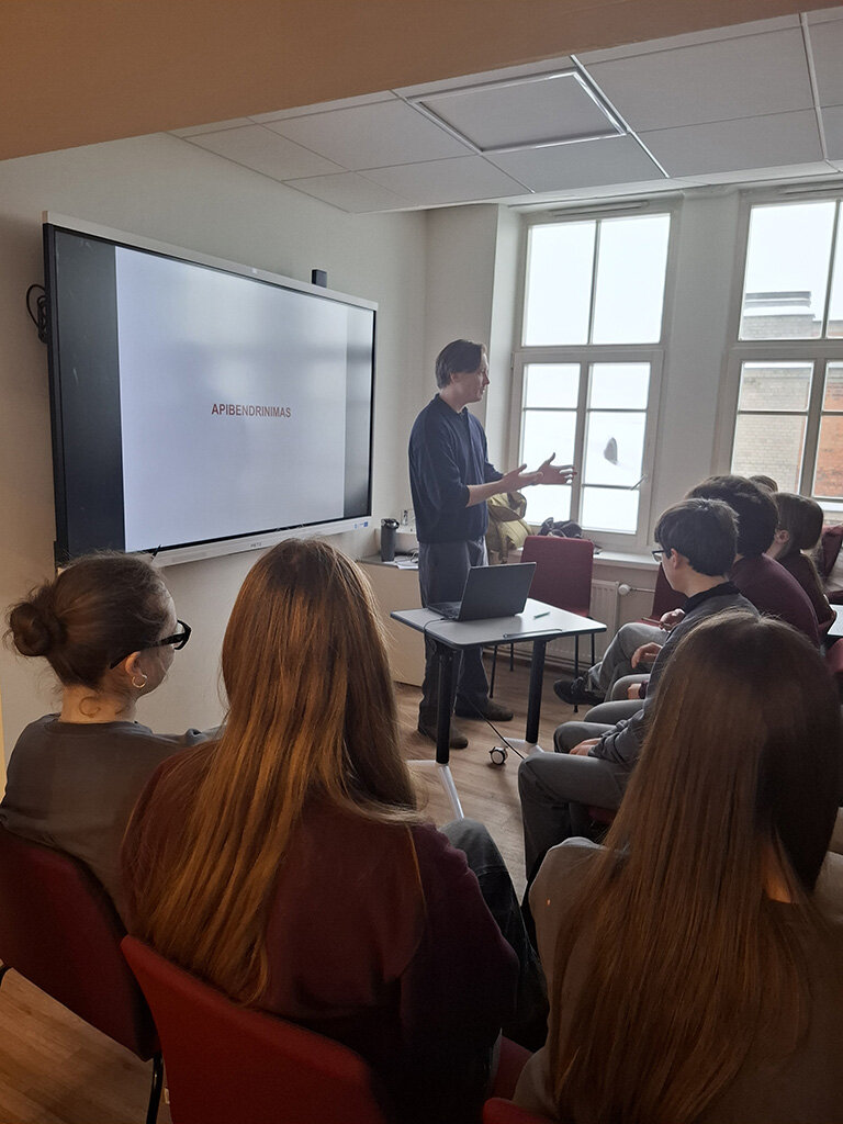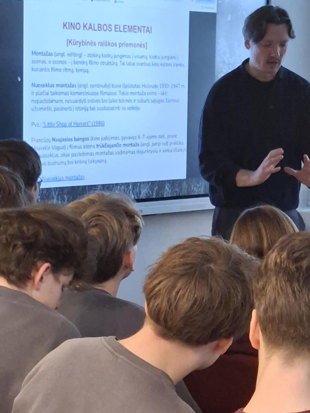 Įgyvendinant „Tūkstantmečio mokyklos II“ (TŪM) programos 66 veiklą „Kino edukacijos programos socialinio sąmoningumo ugdymui“ mokymai gimnazijoje tęsiasi! Vasario 4 d. 1A, 1B, 1C, 1D, 1G, 1F klasių mokiniai ir vasario 6 d. 1E, 1H, 1K, 2G, 2H klasių mokiniai gimnazijos bibliotekoje turėjo galimybę prisiliesti prie kino meno paslapčių. Drauge su lektoriumi Tautvydu Meldaikiu analizavo kino raidos istoriją, susipažino su ryškiausiomis asmenybėmis kino istorijoje. Vasario 11 d. ir vasario 13 d. tos pačios klasės toliau nėrė į Kino edukacijos subtiliuosius vandenis. Visi drauge tyrinėjo kino meną, aptardami šios meno srities kalbos elementus, kūrybinės raiškos priemones, techninį kino filmo atsiradimo kelią ir tirdami matyto kino filmo siužetą bei diskutuodami apie kino paveikumą kasdieniuose žmonių gyvenimuose bei sprendimuose.