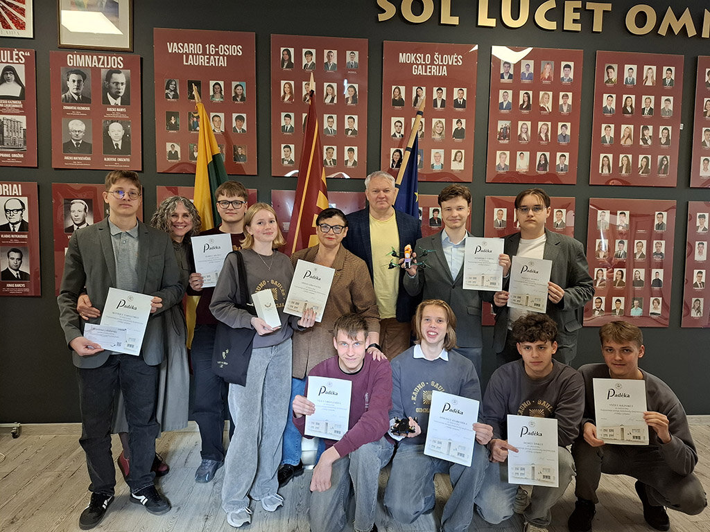 Technologijų sekcijoje mokytojo Žaimanto Žemaičio vadovaujami Dominykas Čiūta, Naglis Skyrius, Domas Šimkus (2C), Vilius Urbanavičius, Vytis Kilinskas, Mykolas Starevičius (2F) pristatė darbą „Saulės dronai“ – skraidančių dronų gamyba“ ir pelnė II vietą.