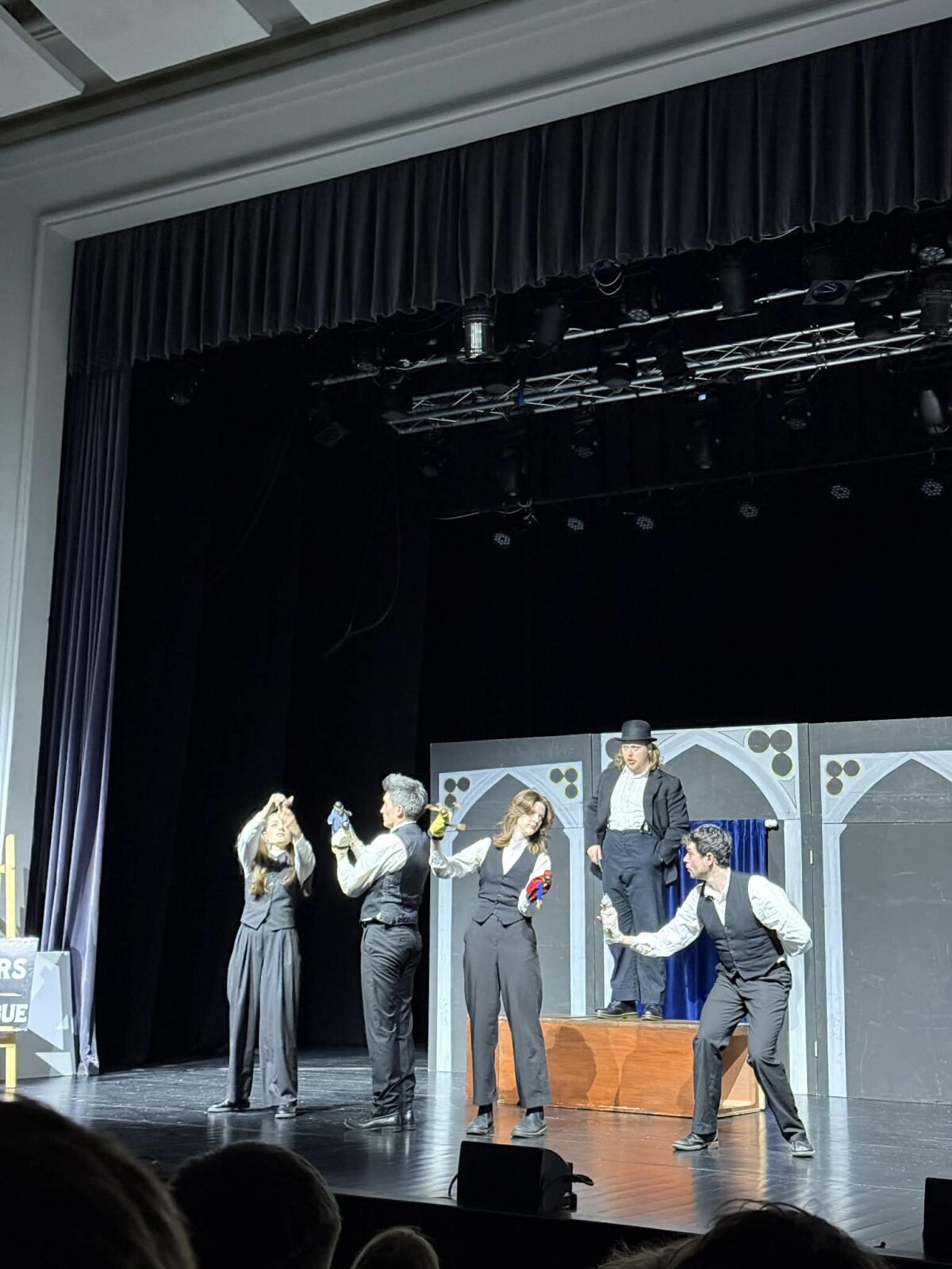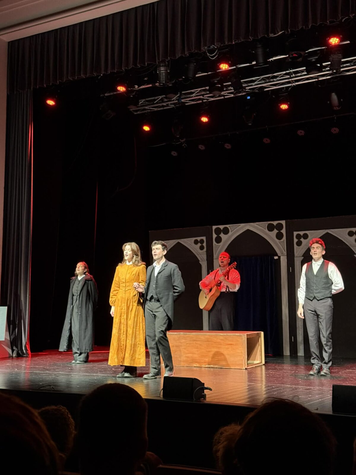 Jau tapo gražia tradicija du kartus per metus lankytis spektakliuose anglų kalba. Balandžio 20 d. gimnazijos 1-3-ųjų klasių mokiniai stebėjo spektaklį „A Pale Gold Raven“, pastatytą remiantis autoriaus Edgaro Alano Po detektyvinėmis istorijomis, kurias pristatė America Drama Group Europe aktoriai. Edgaras Alanas Po - vienas ryškiausių ir mįslingiausių amerikiečių rašytojų, kuris yra laikomas detektyvinio žanro pradininku.