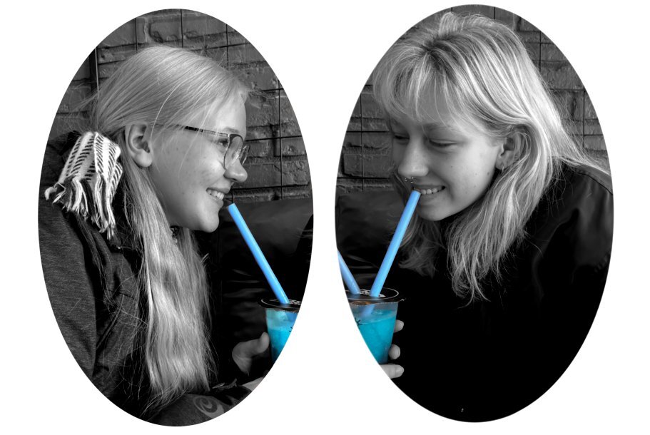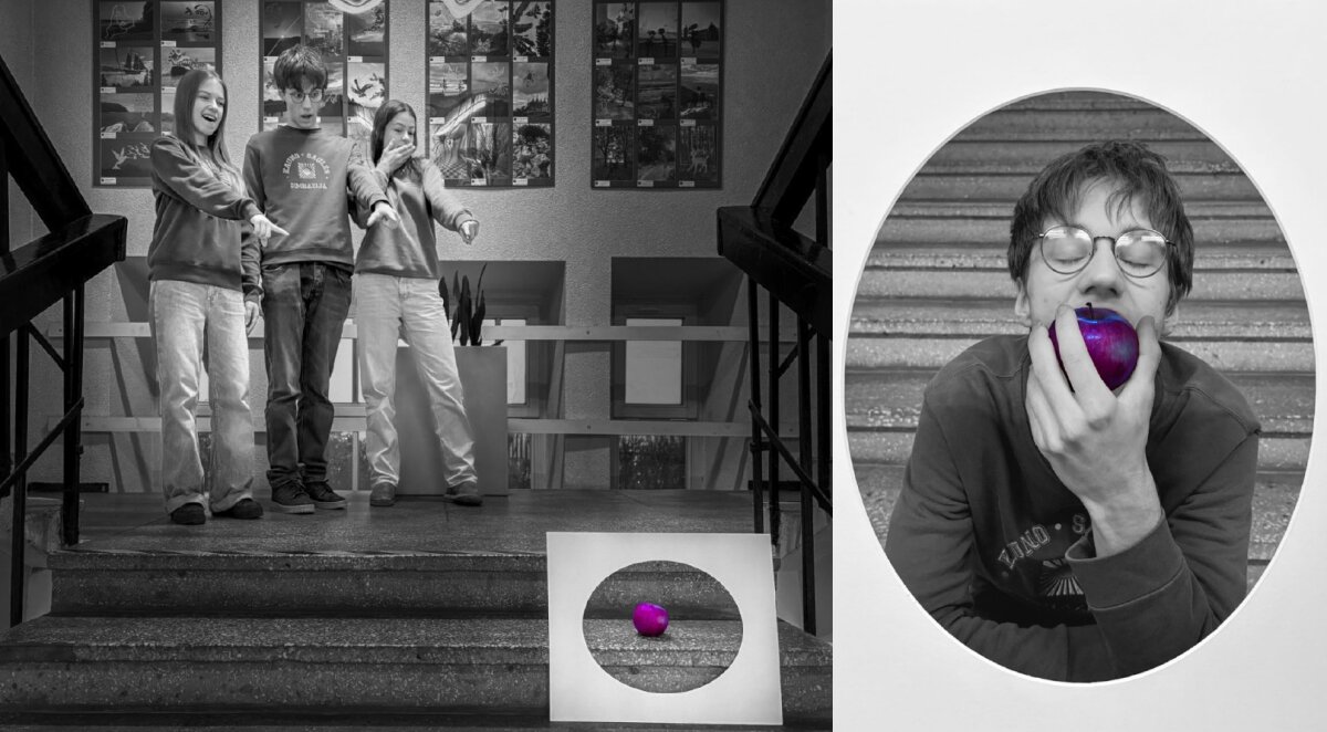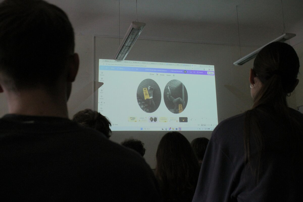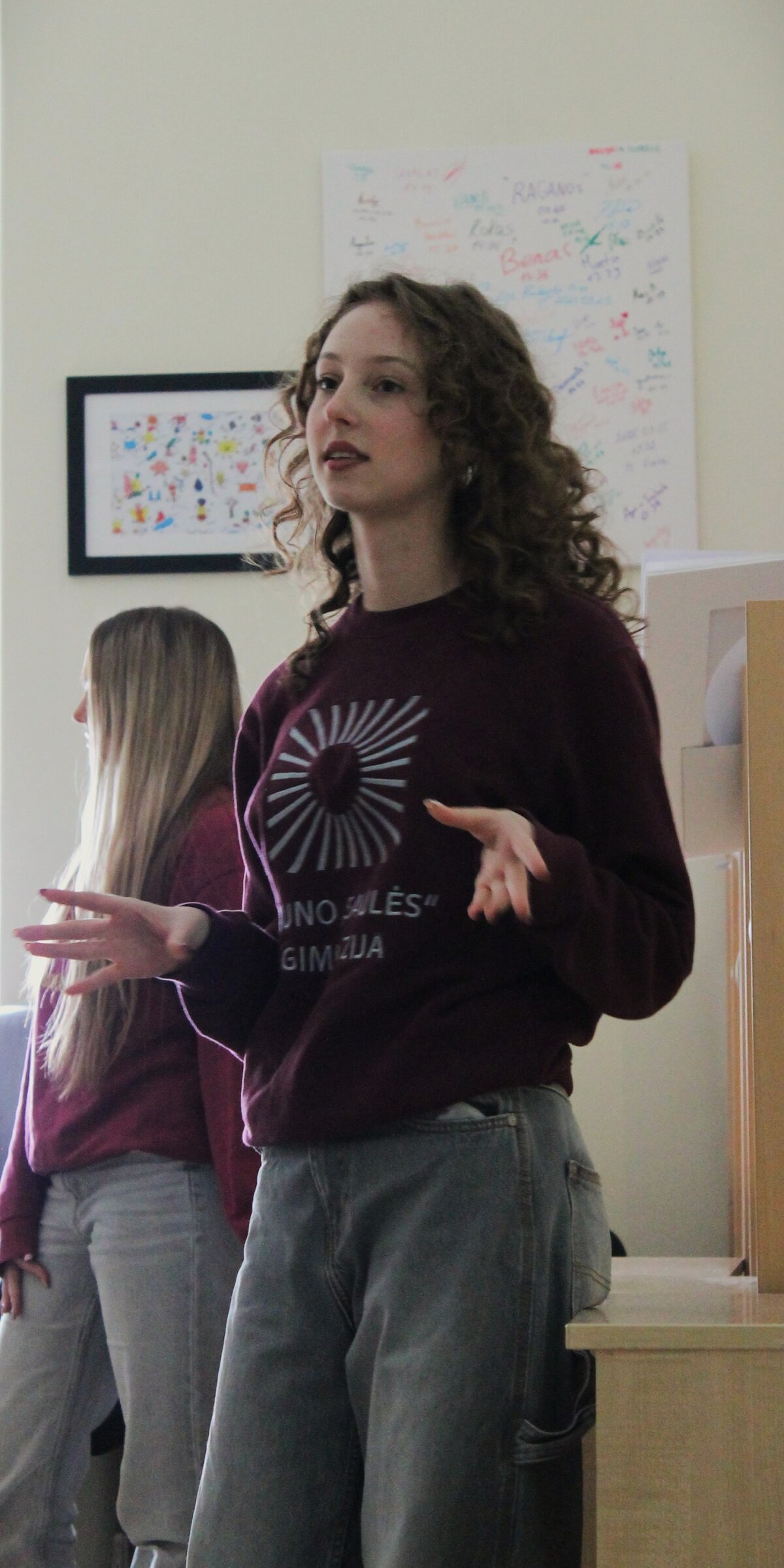 Dirbdami grupėmis mokiniai kūrė portretinio žanro diptiką, paneigdami nusistovėjusį mitą, kad juoda spalva siejama tik su liūdesiu. Kūrybinio proceso metu jie pasitelkė spalvą, iškalbą ir auditorijai perteikė pozityvią, nuotaikingą emociją.